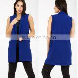 100% Polyester Sleeveless Jacket New Style Royal Blue Crepe Body Fitted Stylish Jacket For Office Work Clothing