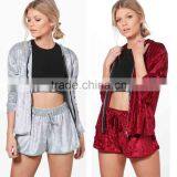 Velvet Jackets Velour Short And Hoodie Jackets Set, Wholesale Designer Clothing