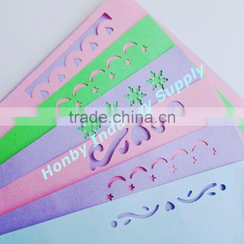 this paper punch cutter is used to cut out the delicate lace on the colorful paper,making a beautiful cards for your friend.