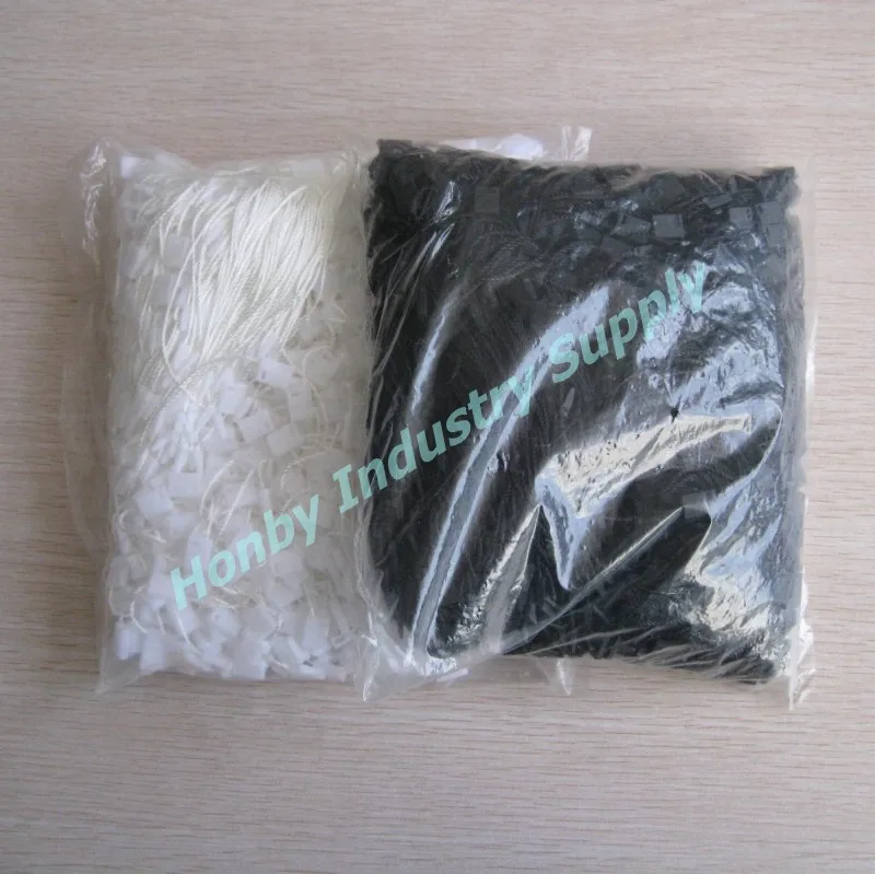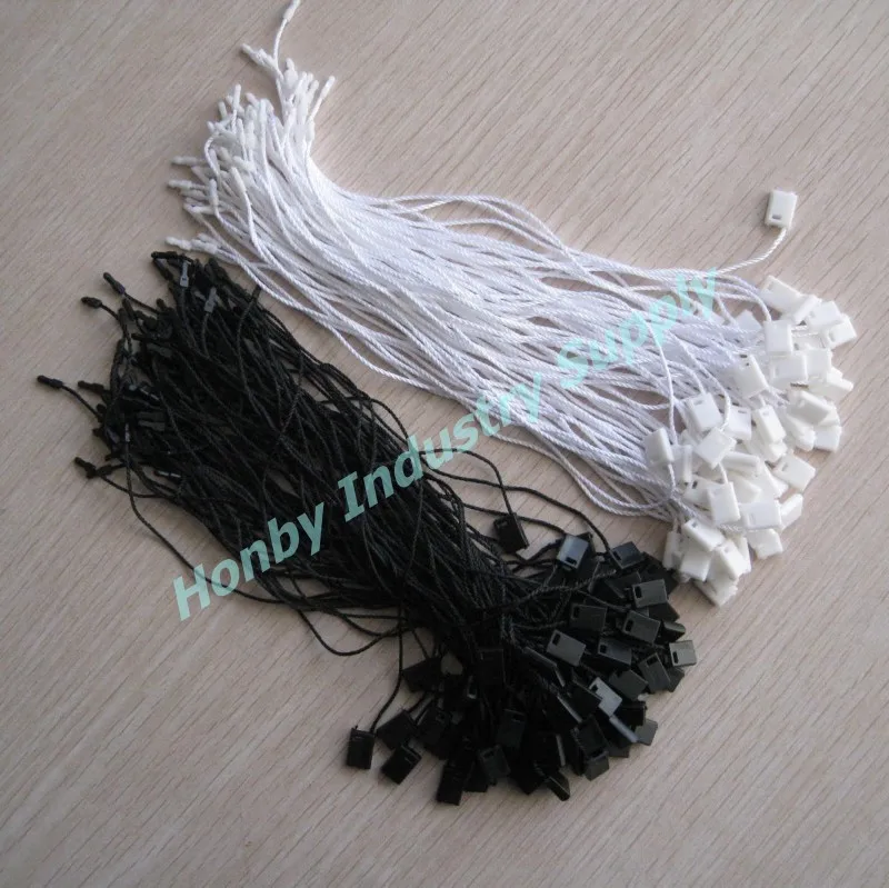 Plastic black and white apparel hang tag string