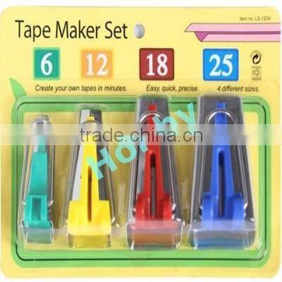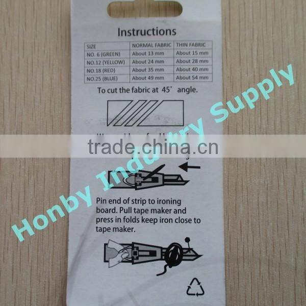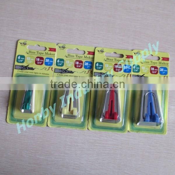 Quilting bias tape maker able to be packed each size with blister card or 4 set per blister card.