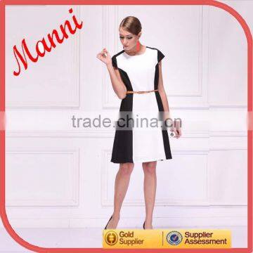 2014 Manni New Designed Knee Length Black And White Formal Dress