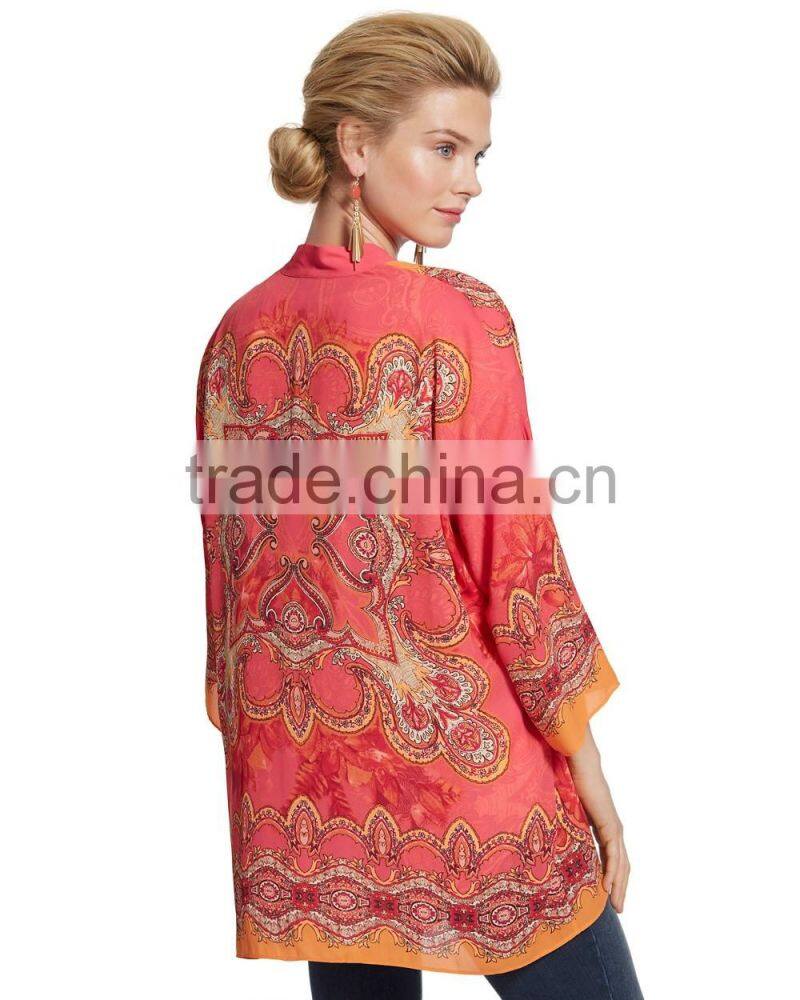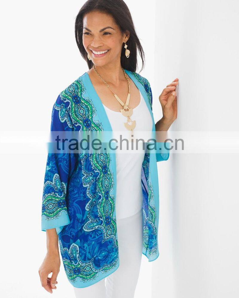 Women's 3/4 Sleeve Printed Front Open Blouse