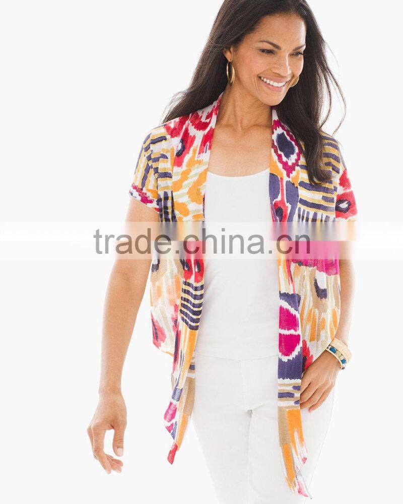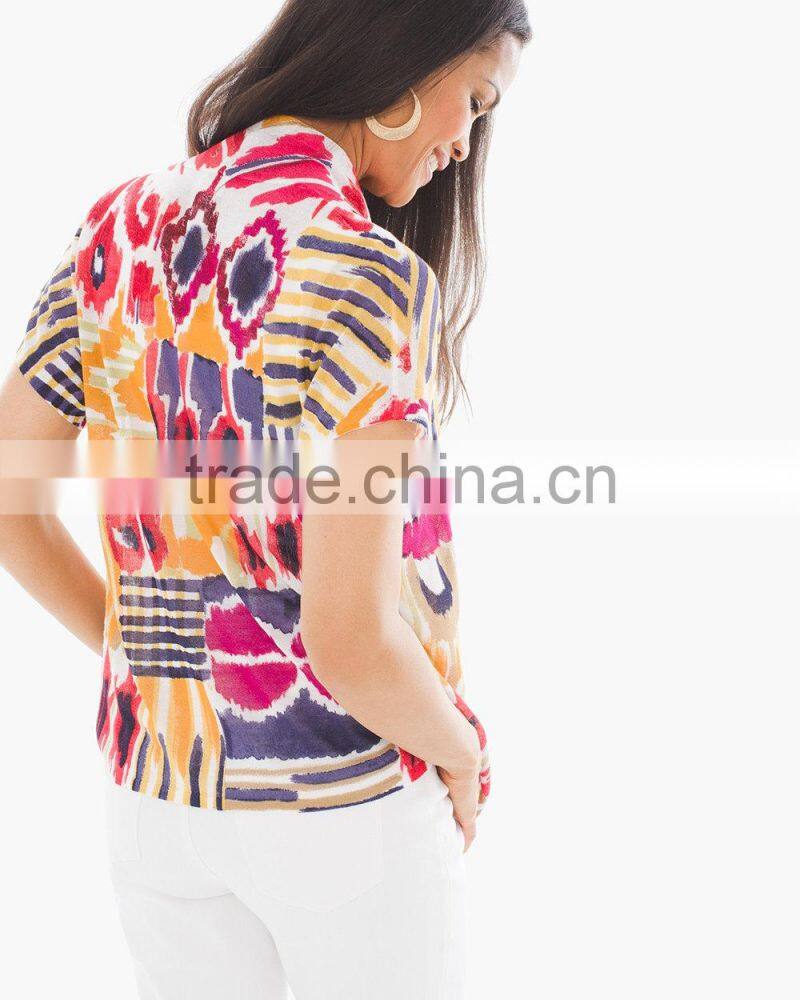 Women's Short Sleeve Printed Front Open Blouse Tops