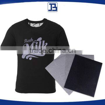 Glitter heat transfer vinly use high-end PET which through precision machine devided into same size materials,then made into vinyls.these high-temperature-resistance PET vinyls will turn into glitter heat transfer vinly with hot melt glue and release glue.