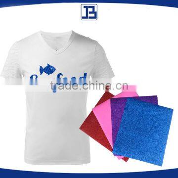 Glitter heat transfer vinly use high-end PET which through precision machine devided into same size materials,then made into vinyls.these high-temperature-resistance PET vinyls will turn into glitter heat transfer vinly with hot melt glue and release glue.