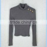 Fashion New Designs High Neck Long Sleeve Knitted Grey Bodycon Women Winter Blouse