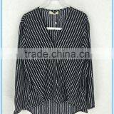 2016 High Quality 100% Cotton Black Stripe Women Leisure Long Sleeve Shirts Designs