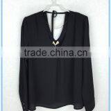 2016 New Design Stylish Girls Chiffon Black Blouse