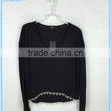 2016 Latest Design Long Sleeve Loose Black Women Blouse