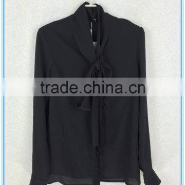 2016 New Design Stylish Girls Chiffon Black Blouse