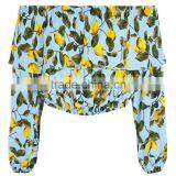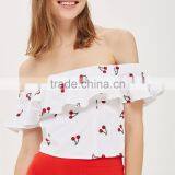 Fashion Design Summer Embroidered Cherry Off Shoulder White Top Ruffle Top For Girls
