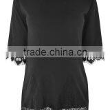New Arrival Hem And Sleeves Lace Detail Custom Black Lace Longline Women New T-Shirt