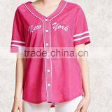 Pink Short Sleeve Embroidered Mesh Baseball Women Shirt