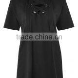 100 Cotton Short Sleeves Choker Collar New Tunic Black Longline Lace Top