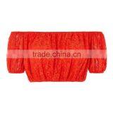 Good Reputation Elastic Hem Fashion Neckline Puff Sleeves Lace Stand-Out Crop Top