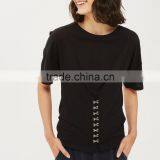 New Design Factory Price Front Detail Girls Fancy Short Sleeve Black T-Shirt