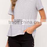 Wholesale High Quality Women 100% Cotton o Neck Short Sleeves Stripe t Shirt