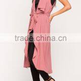 2017 Fashion Design Women Casual Sleeveless Belted Midi Length Drape Jacket