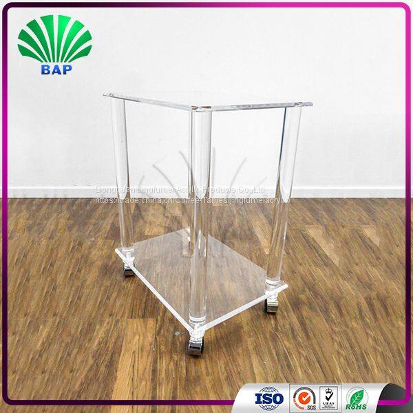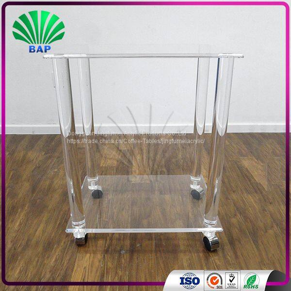 Luxury Clear Hotel Furniture Coffee Cart Acrylic Push Cart Restaurant Tea Trolley