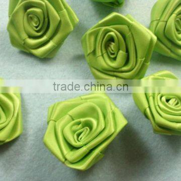 Artificial Apple Green Decorative Satin Ribbon Rose Flower