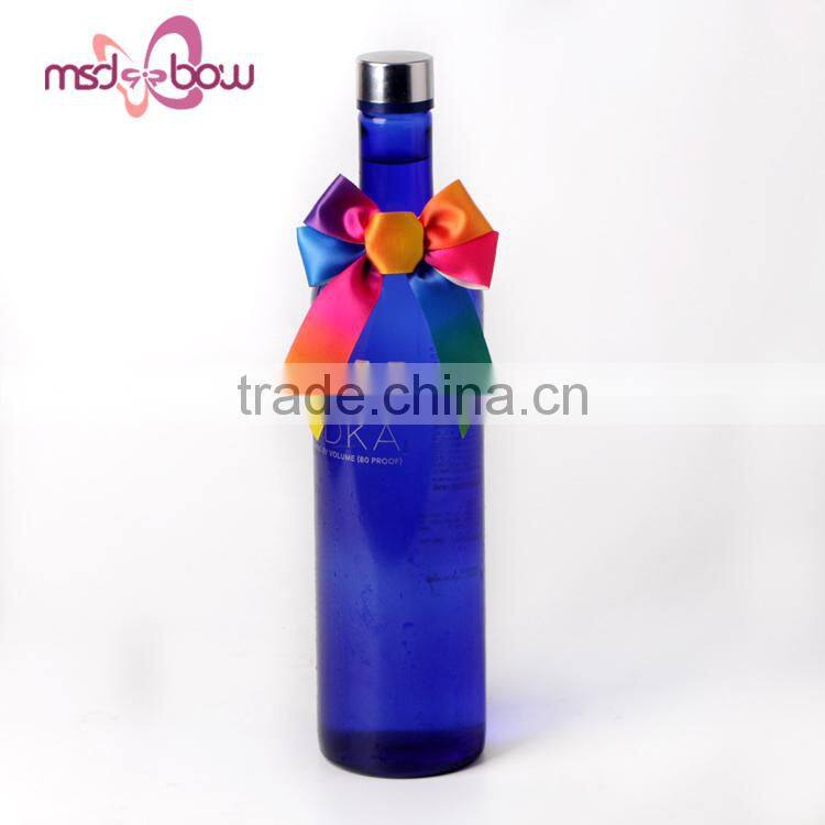 Pre-made Cheap Satin Rainbow Wine Bottle Bow With Rubber