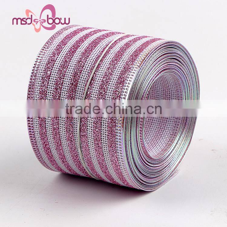 Personalized 2 Inch 50mm Pink Color Jute Burlap Glitter Ribbon
