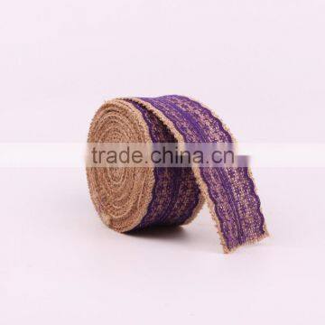 Jute Burlap Natural Hessian Ribbon With Purple Lace Trim Wedding