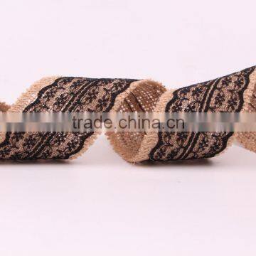 Jute Burlap Natural Hessian Ribbon With Black Color Lace Trim Wedding Rustic Vintage