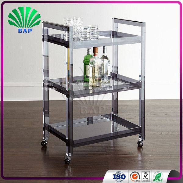 Luxury Clear Hotel Furniture Coffee Cart Acrylic Push Cart Restaurant Tea Trolley