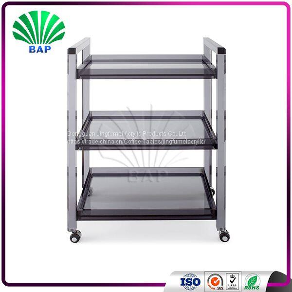 New Fashion Round Service Trolley Acrylic Fast Food Trolley Glass Top Trolley Cart