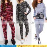 2014 Women Long Sleeve Casual Running Sport Full Leopard and Camouflage Print Black Trim 2 Piece Lounge Tracksuit