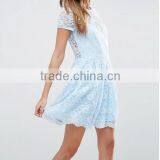 Guangzhou Clothing OEM Blue Pleated Skirt Lace Mini T-Shirt Dress