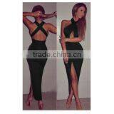 OEM 2015 Summer Solid Color Halter Sexy Personality Irregular Bandage Cocktail Dresses