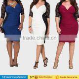 2017 Latest European and American Women Big Size Clothing Lace Sleeve V-neck Ruched Bodycon Sexy Plus Size Dresses Pictures