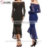 Off Shoulder Beautiful Western Neck Patterns for Ladies Dresses Office Women Wear Party Cocktail Pencil Lace Patchwork 2017