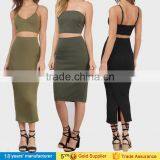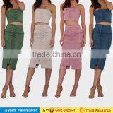 2017 Fashion Women Lace up Suede Two Piece Skirts and Crop Top Set Bodycon Dresses Pictures of Long Skirts and Tops