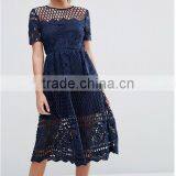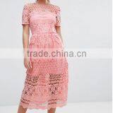 Wholesale OEM Women Clothes Women Short Sleeve Lace Midi Dress