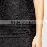 Guangzhou Clothing OEM Cut-away Shoulders Floral Jacquard Black Damask Cocktail Dress