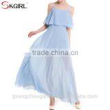 Hot Fashion Flounce Layer Off-the-shoulder Neckline Short Flounce Sleeves Chiffon Open-Shoulder Maxi Dress