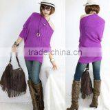 Latest Woman Fashion O-neckbat Sleeve Kintted Loose Pullover Sweater
