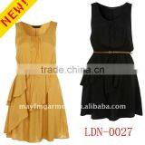 the Fashion New Design V-neck Lady Long Sleeveless Casual Dress