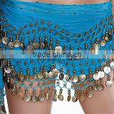 Wholesale Ladies Chiffon Dangling Gold Coins Belly Dance Hip Scarves Wrap Belt