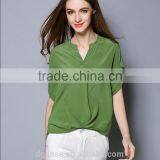 The New Model Summer Fashion Ladies Loose Pure Color Silk Blouse Short Sleeve V-neck Latest Shirt Designs for Women