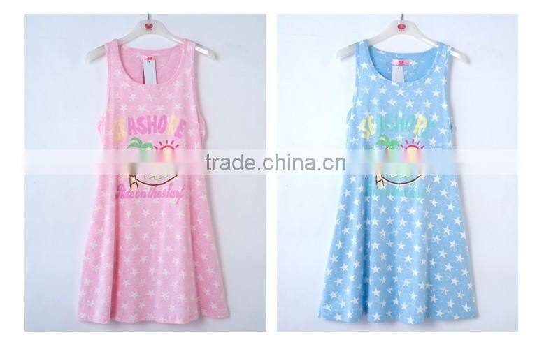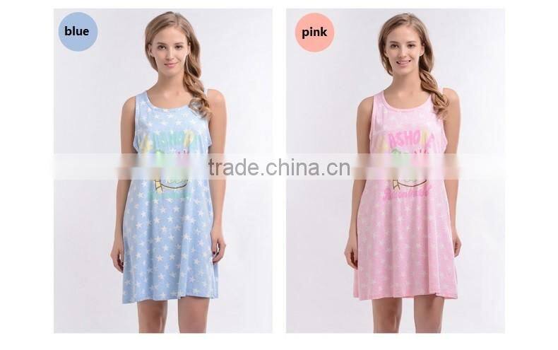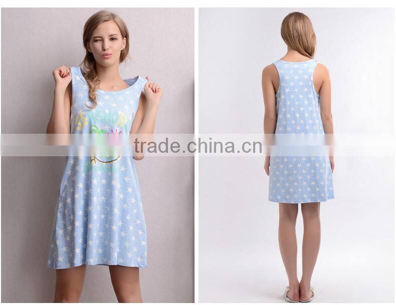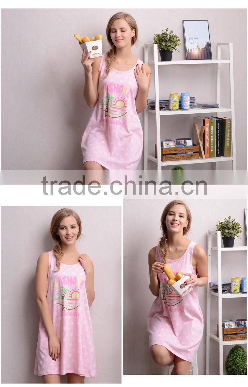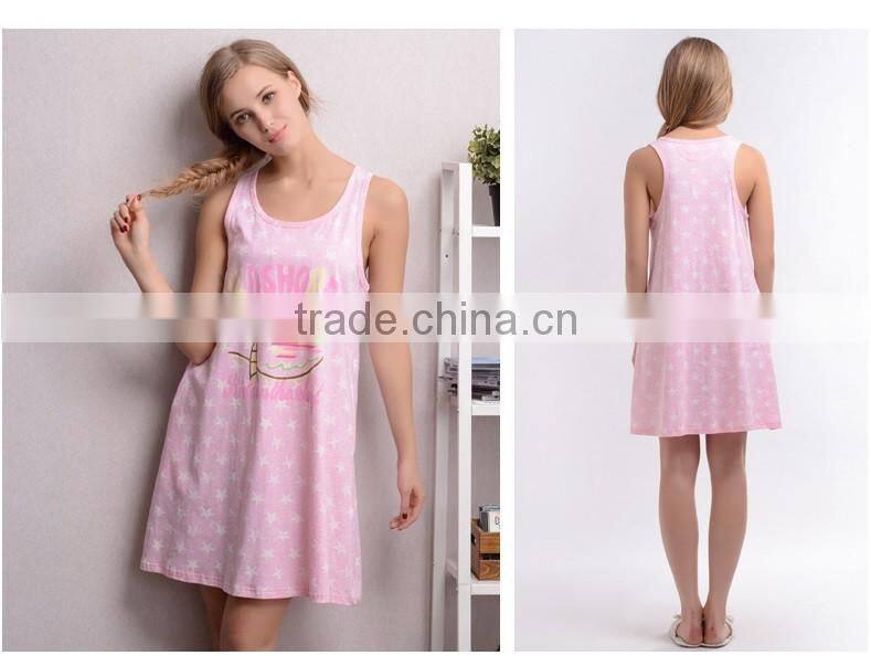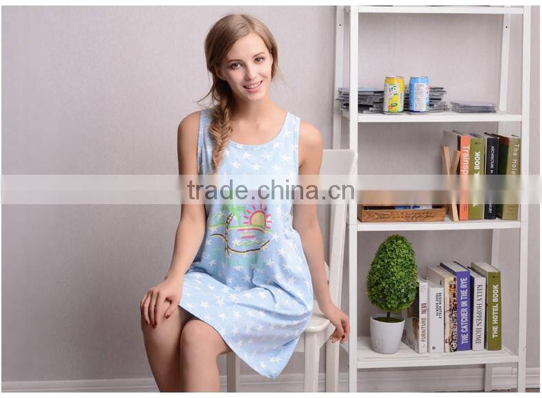 The Spring Ladies Sleepwear Cute Printed Sleeveless Women Household Dress Cotton Pajamas Nightgown for Girls