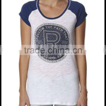 Raglan short sleeve womens t-shirtbed cotton fabric