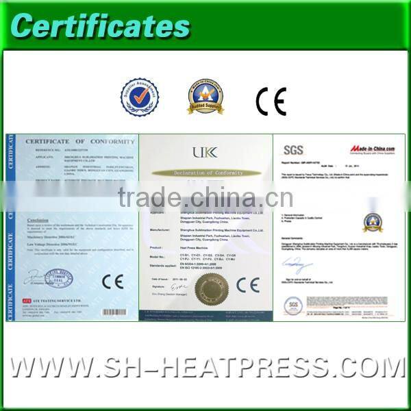 Shenghua Sublimation Printing Machine Equipment Co., Ltd. is one of the leading manufacturer and exporter in Dongguan City, China. We specialize in heat press transfer machines and consumable items as sublimation inks, paper, coated mugs, plates and so on. Our factory covers an area of 8000mm.We got the CE and SGS certificate, and we promise 1 year warranty for our customers. With 11 years' of experience in this field, we enjoy a high reputation for our strong production capacity, high quality products, and timely delivery. We are looking forward to establishing long-term and cooperative relationships with you. If you are interested in any of our products, please free to contact us for further information.