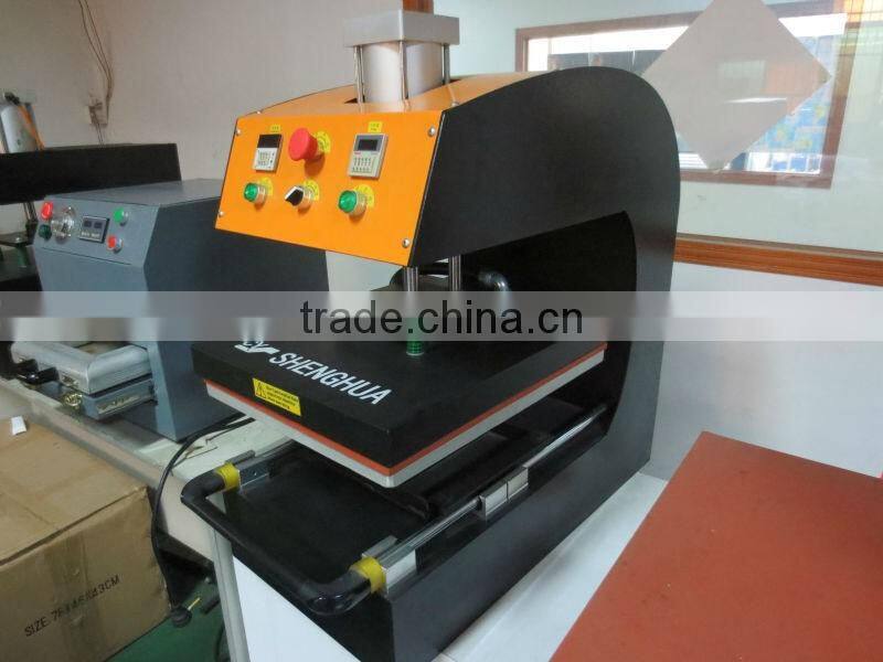5. pneumatic operating, It can offer high printing pressure, the printing image is clear and vivid, and can not fade away. This model is very useful for high quality heat transfer printing ,suitable for logo, icon image,,clothes, poster, banner, umbrella, ceramic tiles printing.