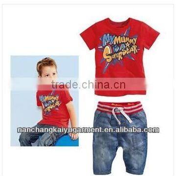 2014 spring new boys fashion short sleeve printing children clothing sets in nanchang