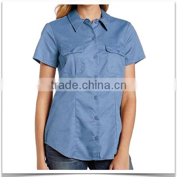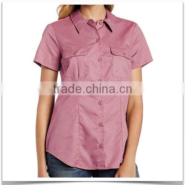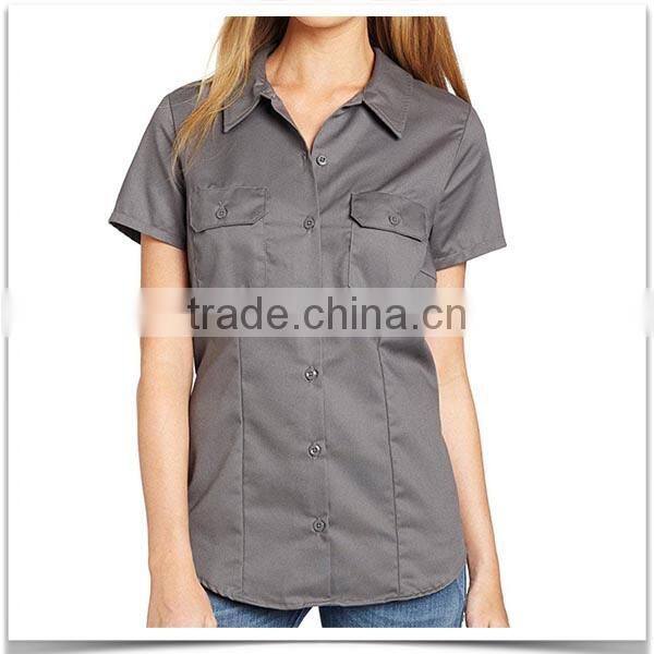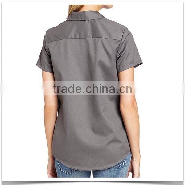 OEM Button Front Dickies Style Women's Short-Sleeve Work Shirt With Button-Flap Chest Pockets
